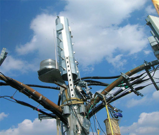 The wireless industry is growing every day–and so is the weight load on existing cell tower poles. It would be impractical to take down the existing poles and replace with a larger poles, so existing poles are “beefed up” by reinforcing the shafts with heavy bars made by PT Indira Steel Indonesia. These reinforcement materials extend the useful life of cell towers and make the pole hold more antennas and equipment.